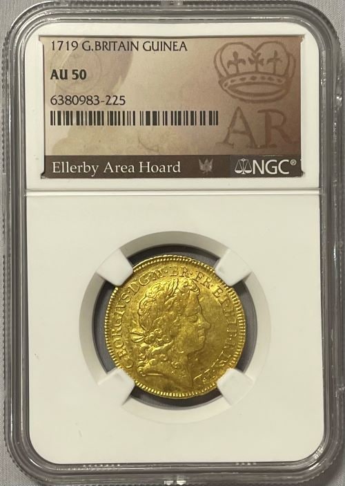 【動画あり】【レア度1-R1】グレートブリテン 1719年 ジョージ1世 1ギニー金貨 NGC-AU50 Ellerby Area...