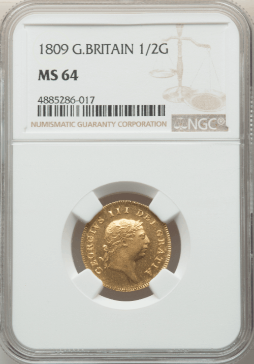 グレートブリテン 1809年 ジョージ3世 1/2ギニー金貨 NGC-MS64