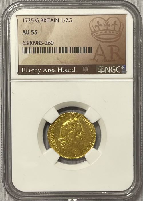 【動画あり】グレートブリテン 1725年 ジョージ1世 1/2ギニー金貨 NGC-AU55 Ellerby Area Hoard ...