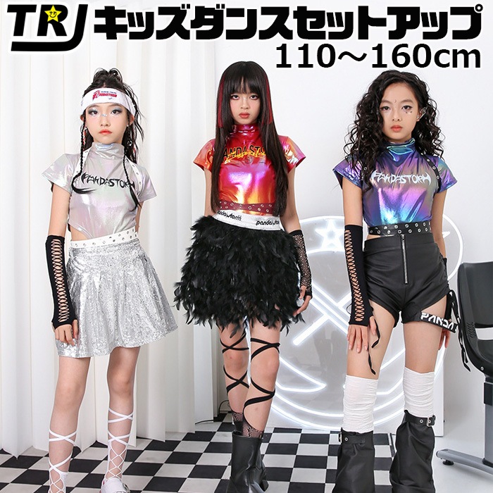 3-5日で発送予定(土日祝省く)ガールズダンス衣装 セットアップ 4点セット チューブトップ レザージャケット レギンスパンツ イ...