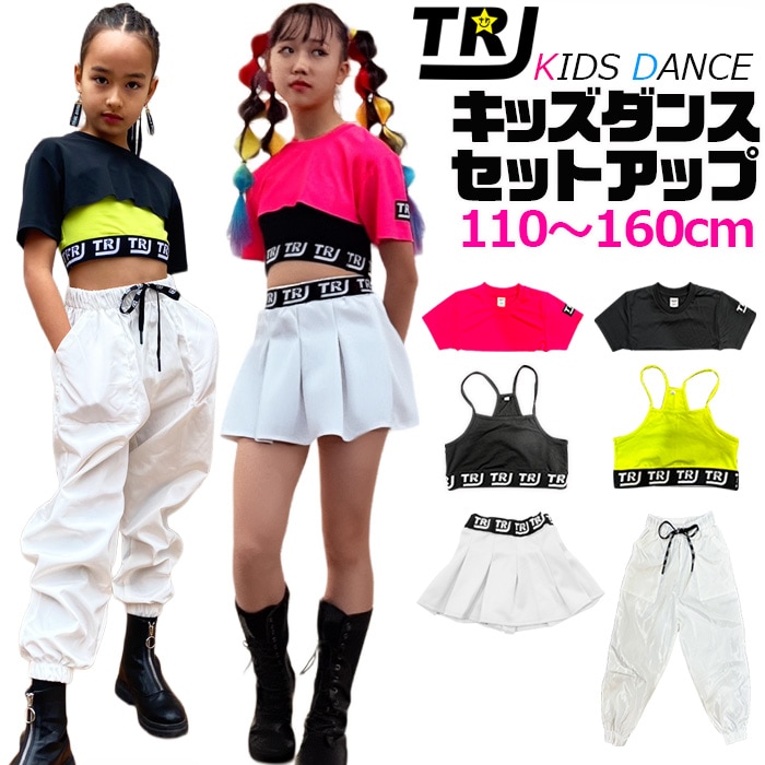 3~5日で発送予定(土日祝除く)ガールズダンス衣装 セットアップ 半袖Tシャツ カーゴパンツ ミニスカート ホワイトパンツ ミニ丈...