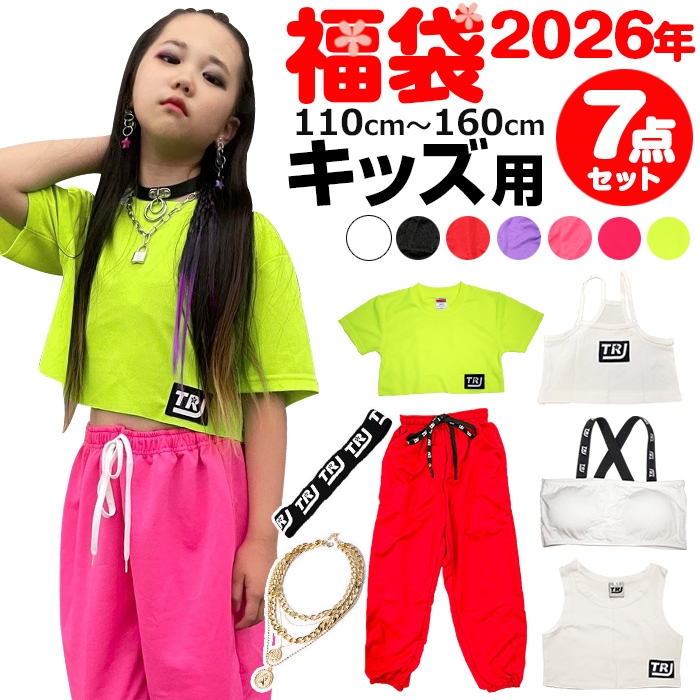 2026年福袋 3~5日で発送予定(土日祝除く)キッズダンス衣装7点セット 上下セットアップ タンクトップ・チューブトップ・ショー...
