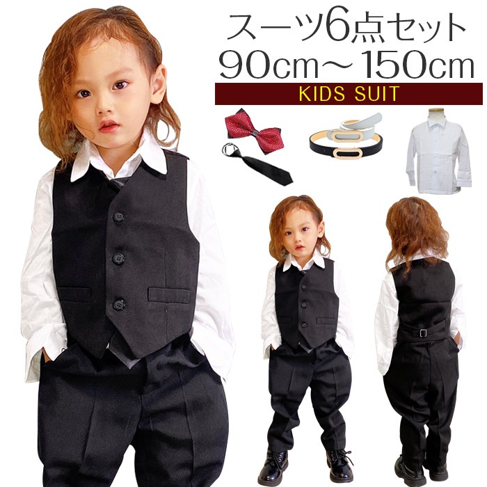 ラブブシール プレゼント中12/20まで 営業日は12時まで当日発送 子供スーツ 6点セット ベスト/パンツ/Yシャツ/ネクタイ/...