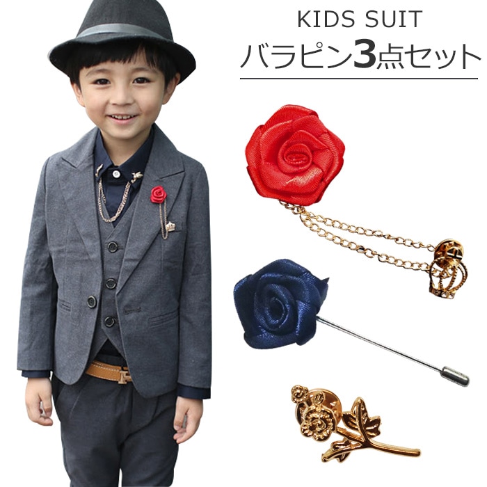 ラブブシール プレゼント中12/20まで 送料無料 薔薇ピン3点セット 男の子 子供スーツ 小物 アクセサリー チェーンブローチ ...