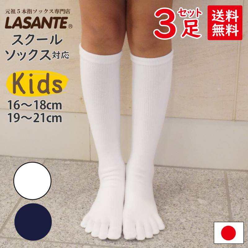 3足組 ◎ 送料無料(ネコポス日時指定不可) ◎ ベーシック 5本指ソックス キッズ ハイソックス 抗菌防臭加工 (16-18c...