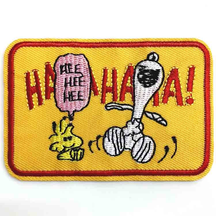 送料無料/ ワッペン スヌーピー HAHAHA 刺繍 アイロン 長方形 キャラクター パッチ アップリケ SNOOPY