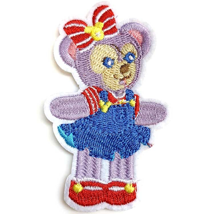 送料無料/ ワッペン シェリーメイ グレーリボン M 刺繍 アイロン キャラクター ダッフィ ディズニー ワッペン アップリケ