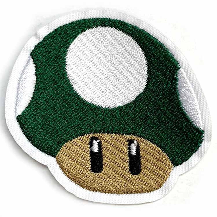 送料無料/ ワッペン マリオブラザーズ キノコ グリーン 刺繍 アイロン キャラクター MARIO ワッペン アップリケ