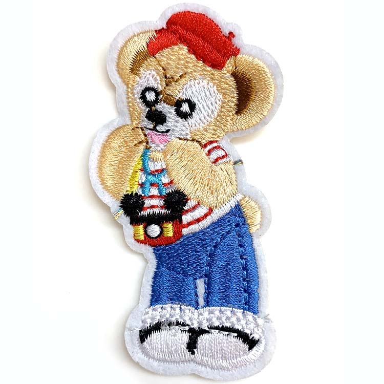 送料無料/ ワッペン ダッフィ デニム M 刺繍 アイロン キャラクター ダッフィ ディズニー ワッペン アップリケ
