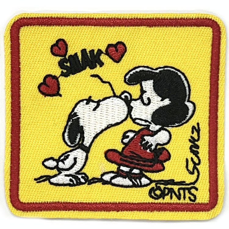 送料無料/ ワッペン スヌーピー SMAK ルーシー キス 四角 刺繍 アイロン キャラクター パッチ アップリケ SNOOPY