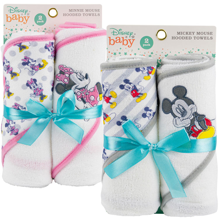 送料無料/ ディズニー フード付き ベビータオル 2枚セット ミッキーマウス ミニーマウス バスタオル おくるみ ベビーおくるみ ...