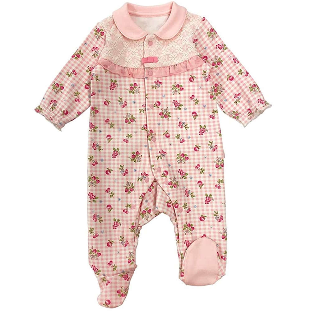 【未熟児】【低出生体重児】【早産児】【NICU】用 ベビー服: 長袖ロンパース ピンクガーデン