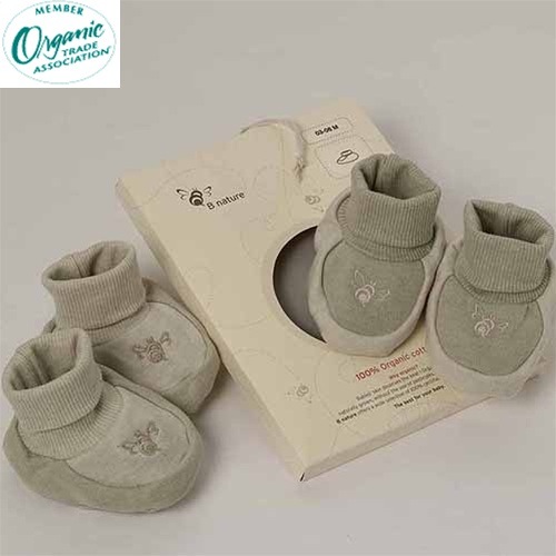 【アトピー】【敏感肌】【皮膚炎】 100%オーガニックコットン:ブーティーソックス グリーンティ 2足セット 3-6か月