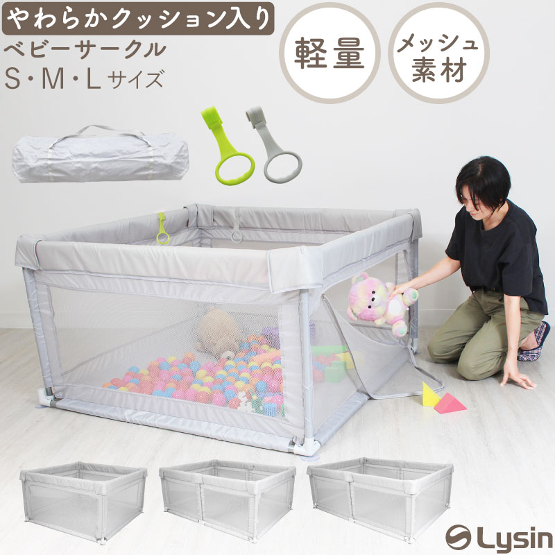 改良版 ライシン ベビーサークル 高さ 70cm ハイタイプ メッシュ グレー S/M/L サイズ 吊り輪 収納袋 付属 LS-B...