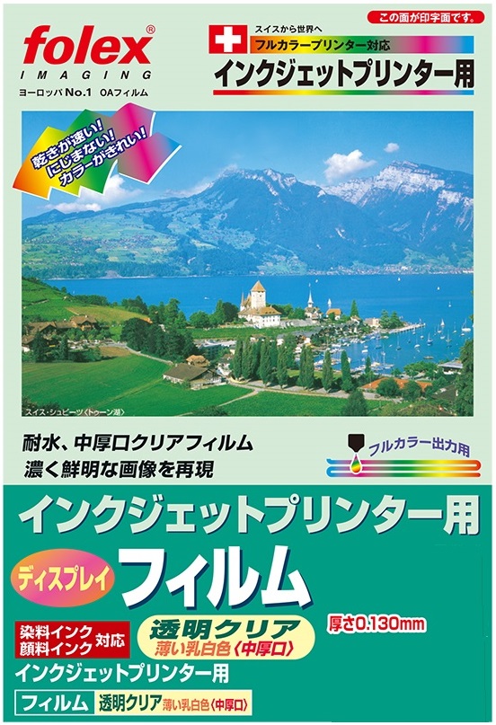 ディスプレイフィルム 透明 (薄い乳白色)中厚口 染料・顔料対応 インクジェットプリンター用 フォーレックス folex IJF-...