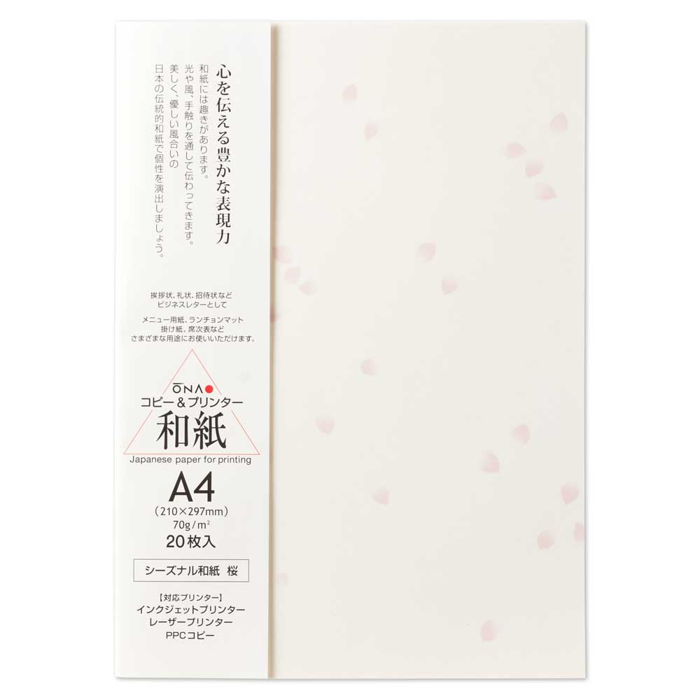 プリンター用紙 シーズナル和紙 桜 A4サイズ20枚入 インクジェット・レーザー対応 桜の花びら模様入り 挨拶状 招待状 季節のお...