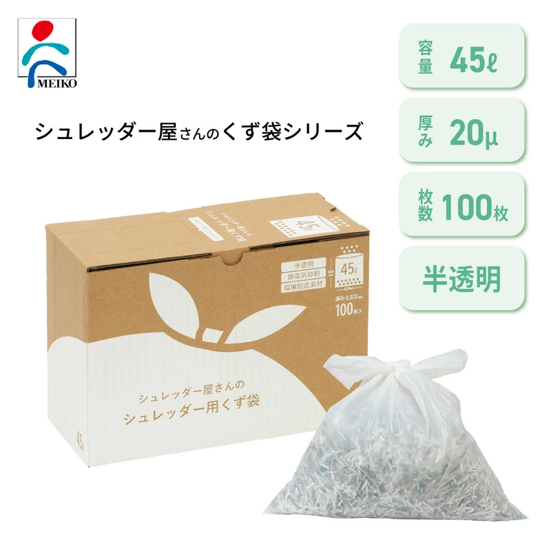 明光商会 45L シュレッダー専用ゴミ袋 ポリエチレン エコ素材 静電気抑制 破れにくい シュレッダー屋さんのくず袋 45L 10...