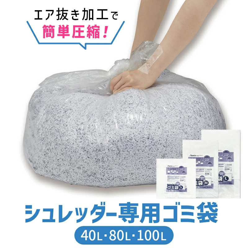 40L 80L 100L シュレッダー専用ゴミ袋 静電気防止 エア抜き加工 アスカ Asmix SDB20S SDB20M SDB...