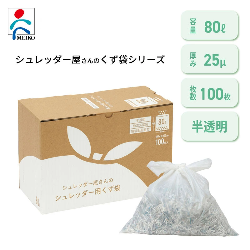 明光商会 80L シュレッダー専用ゴミ袋 ポリエチレン エコ素材 静電気抑制 破れにくい シュレッダー屋さんのくず袋 80L 10...