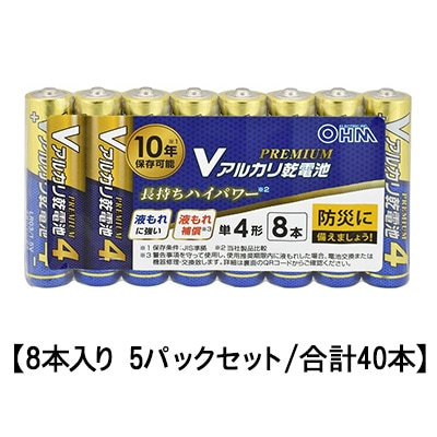 LR6PN8P【8本入り5パックセット/合計40本】 || アルカリ乾電池 OHM Vシリーズ プレミアムハイパワータイプ <単3...
