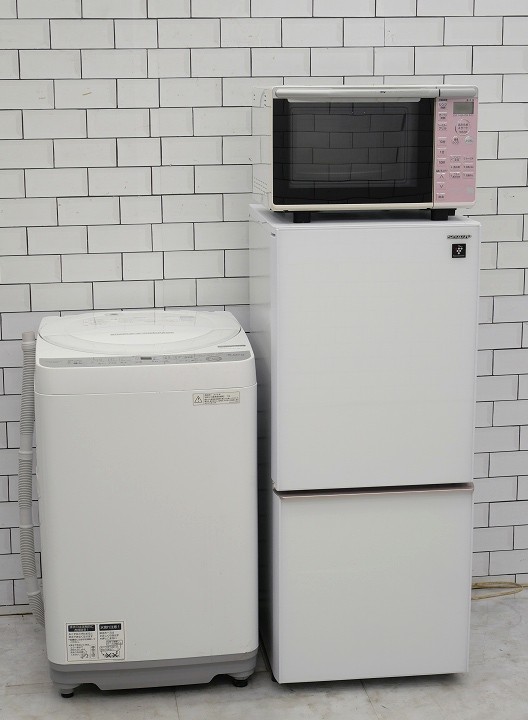 137L、6kg/18年、18年、18年製/シャープ、シャープ、日立製/(冷蔵庫、洗濯機、オーブンレンジ)中古家電3点セット