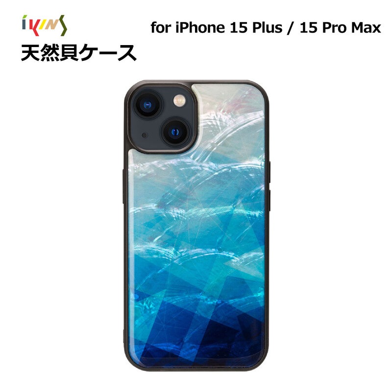 ikins [ iPhone 15 Pro Max / 15 Plus 用] 天然貝ケース Blue Lake(ブルーレイク) 光...