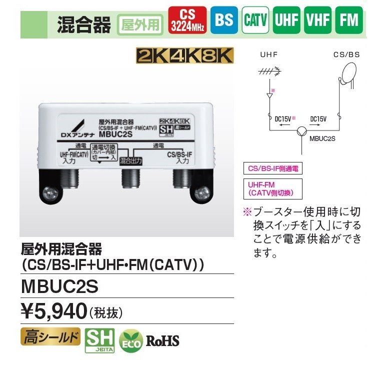 DXアンテナ 屋外用混合器(CS/BS-IF+UHF・FM(CATV))[2K・4K・8K対応] MBUC2S