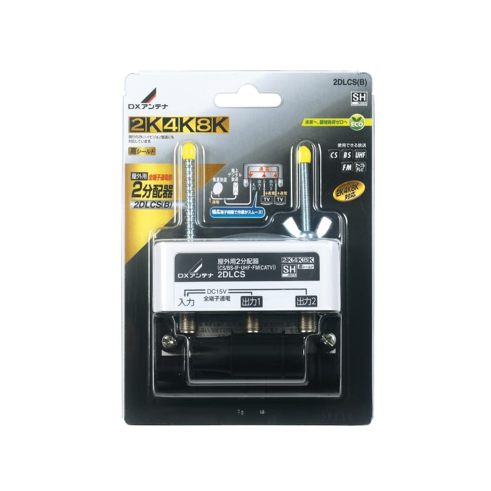 分配器 2DLCS(B) DXアンテナ 2K 4K 8K 対応 屋外用 2分配 全端子通電 F型端子 ブリスター
