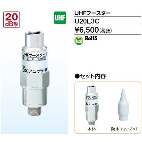 DXアンテナ UHFワンタッチブースター・電源部付き U20L2CB ■