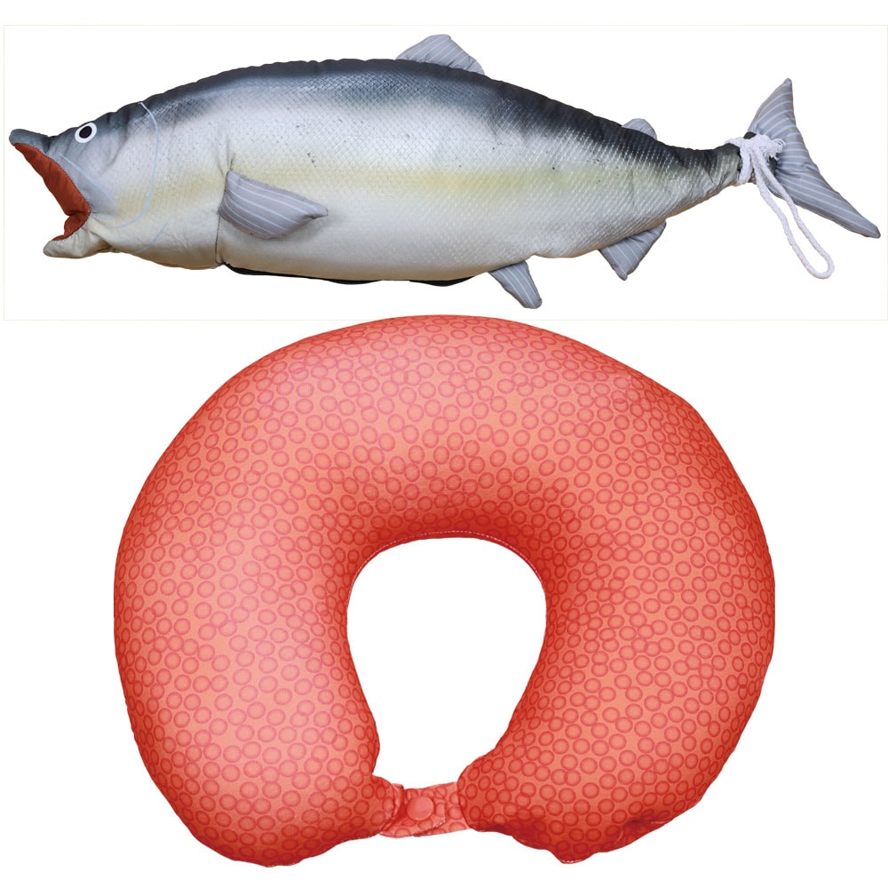 北海道産 鮭 ネックピロー(筋子タイプ) 旅行用首枕 不織布巾着リュック付属 Neck pillow-0419