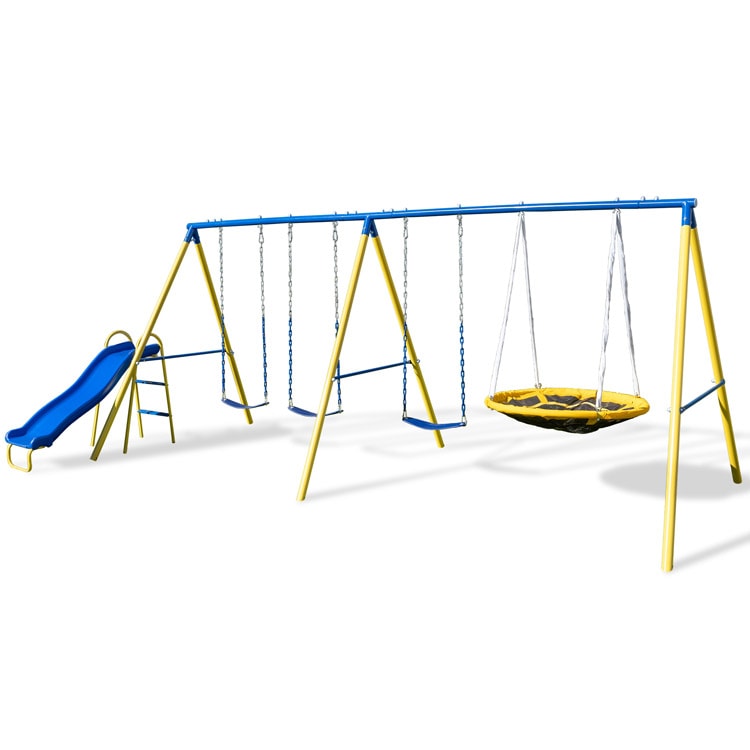 トリプル スイングセット 屋外 ブランコ ラバーコーティング 自立式 ハンモック 庭あそび 大型遊具 /配送区分C