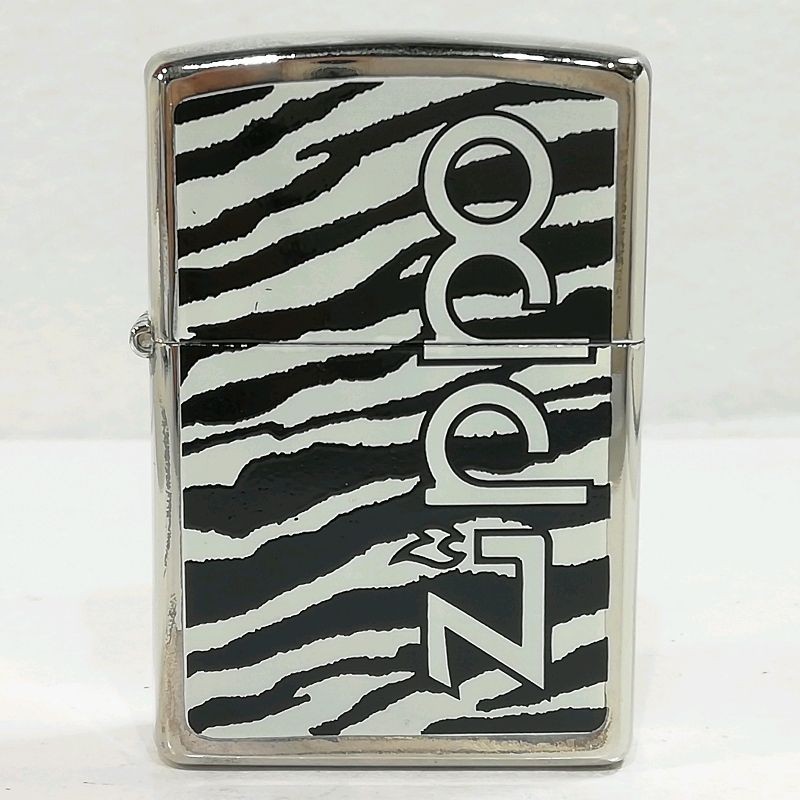 【未使用品】【送料無料】ZIPPO ゼブラ柄 ブラック×ホワイト シルバー オイルライター※メール便でお送りします【代引き不可】