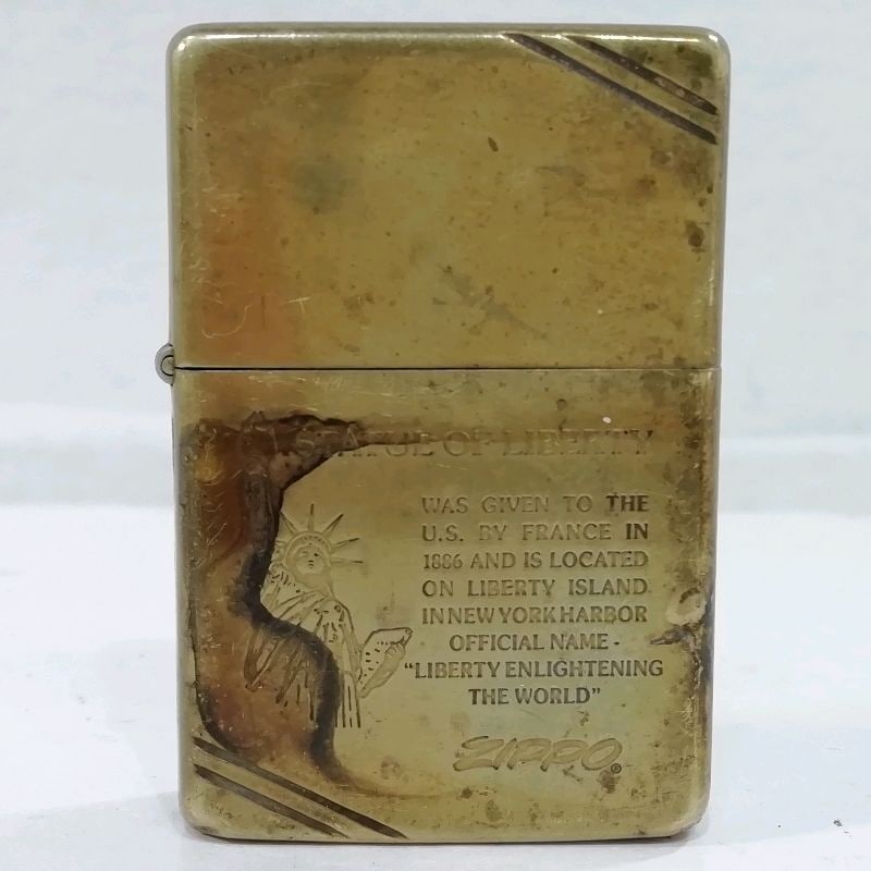 【中古】【送料無料】ZIPPO STATUE OF LIBERTY 自由の女神像 オイルライター フラットトップ ゴールド※メール...