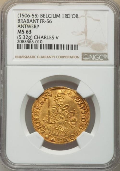 ベルギー ブラバント アントワープ 1506-55年 シャルル5世 1レアルドール金貨 NGC-MS63