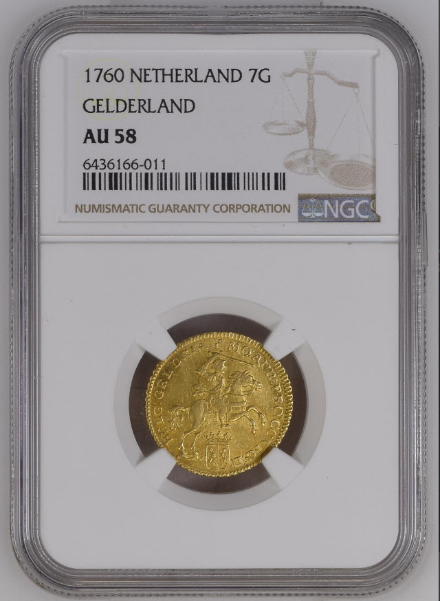 【動画あり】オランダ 1760年 ヘルダーラント 7ギルダー金貨 NGC AU58