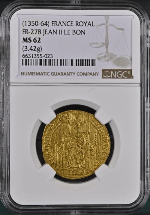 【動画あり】フランス 1350-64年 ジャン2世 1ロイヤル金貨 NGC-MS62