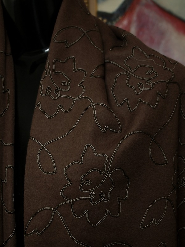 閉店処分大セール お買得 【カシミヤウール/コード刺繍】 日本製生地 茶 140cm巾2.5m(スーツ、ワンピース分) 2181-...