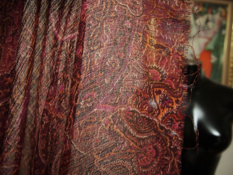 閉店大セール お買得 【ウール,クレープ/エスニックプリント/サラサ柄】 イタリ―製,,輸入生地,,エンジ系,ウール100%,14...