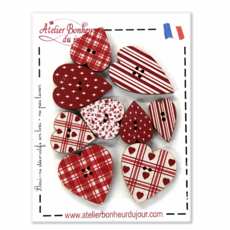 フランス製 木製ボタンセット (私の赤いディゴワンキッチン) アトリエ・ボヌール・ドゥ・ジュール