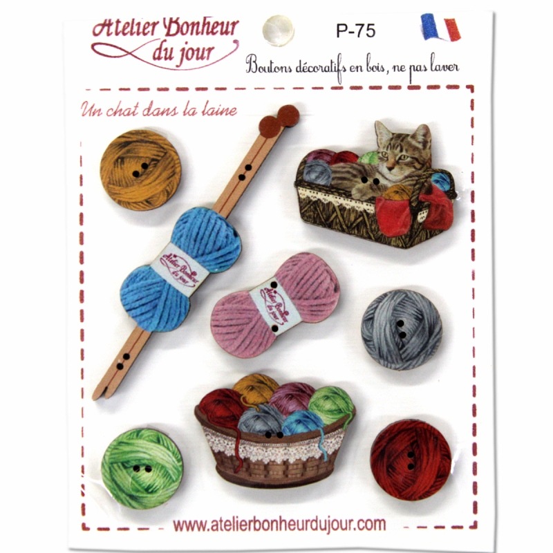 フランス製 木製ボタンセット (毛糸 猫) アトリエ・ボヌール・ドゥ・ジュール