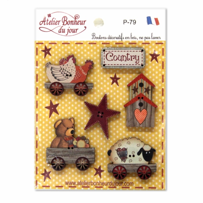 フランス製 木製ボタンセット (COUNTRY) アトリエ・ボヌール・ドゥ・ジュール