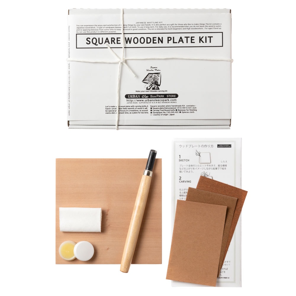 工作キット 彫刻刀で彫るウッドプレート・小(正方形) 削って磨いて自分で作るオリジナルテーブルウェア 木工DIY URBAN OL...
