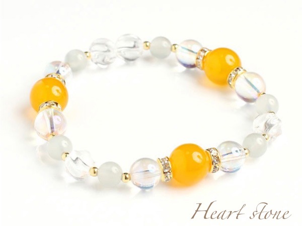 爽やかな色合いで夏にもピッタリ!イエローメノウとシルバームーンストーンのブレスレット