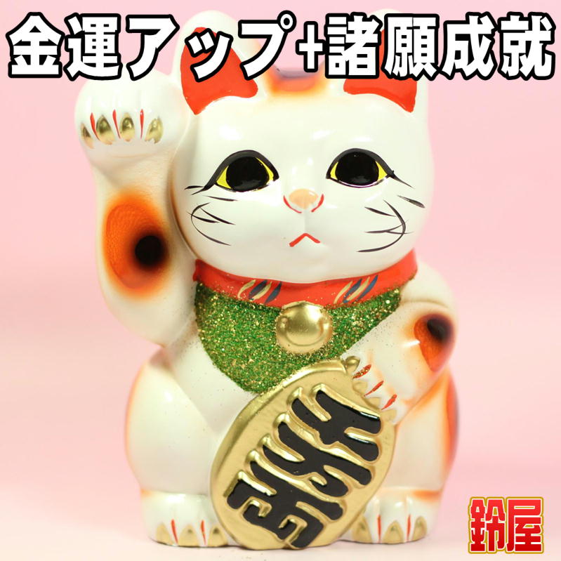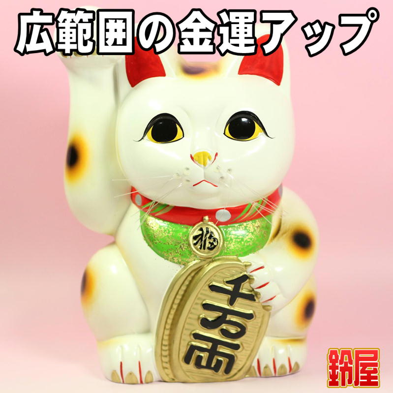 白色の右手上げ招き猫の置物|常滑焼招き猫を販売
