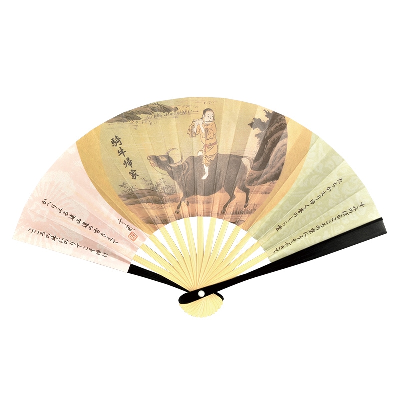 干支扇子 6.5寸 黒塗 十牛「騎牛帰家」 幸風画 裏面:表千家花押集 (化粧箱)