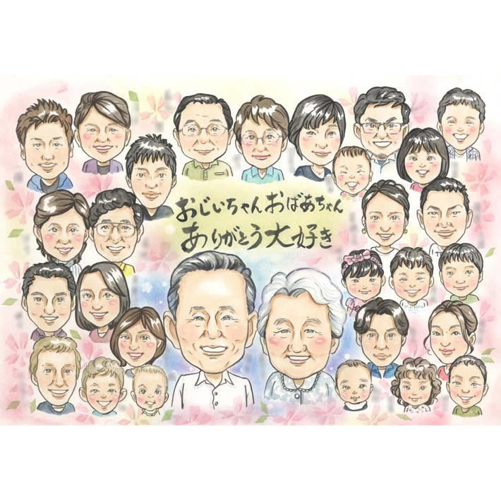 おじいちゃん、おばあちゃんありがとう大好き 大家族の似顔絵は一生の宝物になります。 COSMOS 還暦祝い 古希祝い 喜寿祝い 傘...