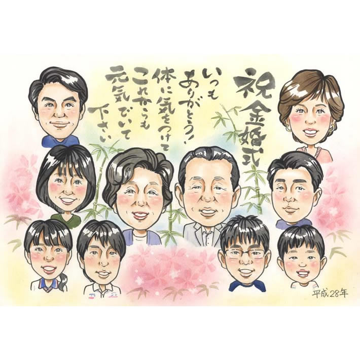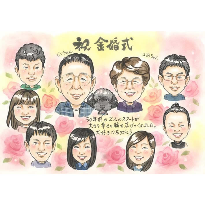 金婚式・銀婚式を迎えるご両親に 子供が祝う似顔絵 COSMOS 結婚10周年 銀婚式 結婚25周年 真珠婚式 結婚30周年 珊瑚婚...