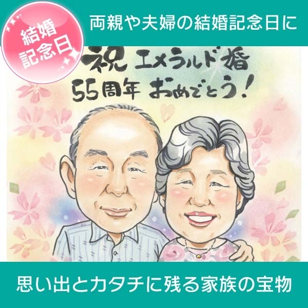 結婚記念日 55年目 エメラルド婚式プレゼント 結婚記念日55年目のプレゼント 似顔絵ギフトでお祝い COSMOS 結婚記念日 金...