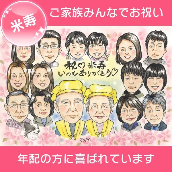 米寿記念のオリジナル似顔絵 88歳の米寿祝いに喜ばれる、オンリーワンの贈り物 米寿の記念に贈るオリジナル似顔絵ギフト