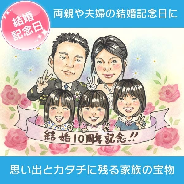 記念すべき10周年!夫婦で、家族で、写真とはひと味違う似顔絵制作しませんか? 妻 夫 夫婦 スイートテン 結婚10周年 錫婚式 ア...
